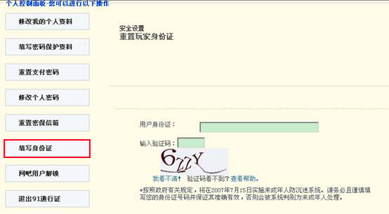 《开心》防沉迷系统于2009年6月3日进行升级,升级完成后未填写***信息的帐号将会被纳入防沉迷系统,为了不影响您正常的游戏体验,请未填写***信息的玩家,登陆我们的91帐号管理中心,补填您的***信息,即可解除防沉迷系统。