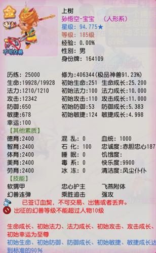 孙悟空的攻防敏三围成长高达21.4,花花世界最凸的三围(幸好是公的),三围高,身价就高,各位朋友都知道这个理吧。