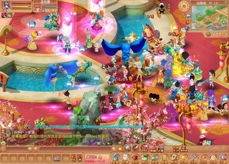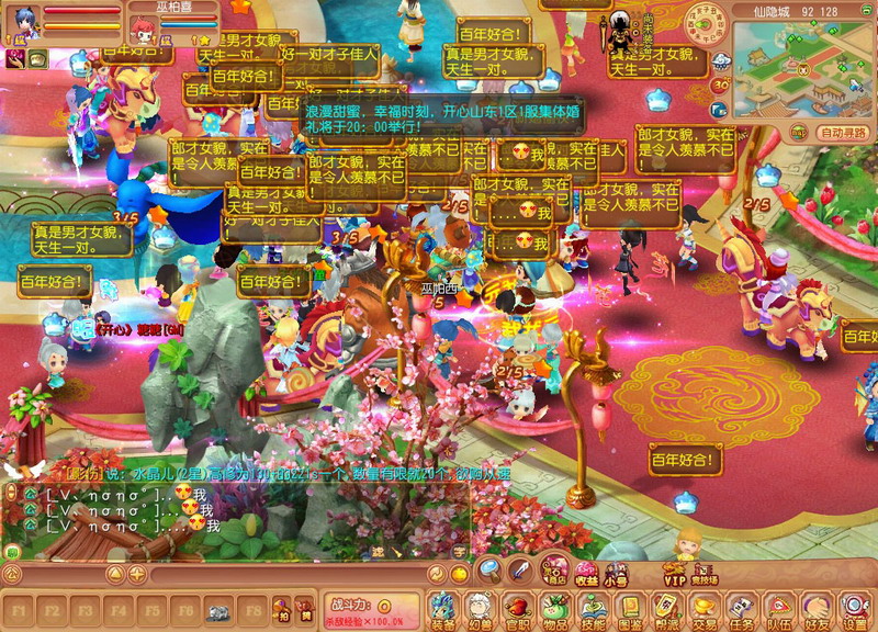 这是婚礼正式开始前在月老前面的情形,嘎嘎,没错,那两只蓝色的“飞天小猪”正是GM大大,比我先前所想象的GM形象要卡哇伊许多哦!另外值得一提的是,婚礼是20:00开始,而我截这个图的时间是19:15,嘎嘎~!集体婚礼的人气确实是不一般啊!