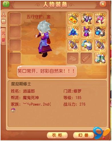 今天月月为大家带来的是北京1区3服对神秘刺客—逍遥郎的采访。玩修罗的人很多,我为什么独独采访他呢!不仅仅是因为他装备跟宠物上的出彩~而是因为他是个另类的修罗,全G的修罗大家见过没有?今天月月就带大家一起去了解神这位神秘的刺客。
