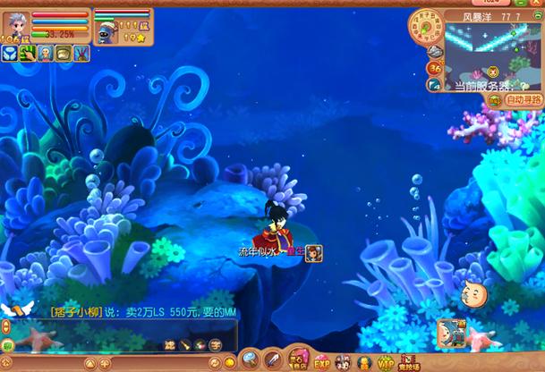 置身于海底世界,看着身边流动的海水和游动的鱼虾,真是一种心灵+视觉的享受啊!当然,还可以和心爱的人练级完一起来这来个鸳鸯浴!嘎嘎,映天海(43,34)你一定要去哦。