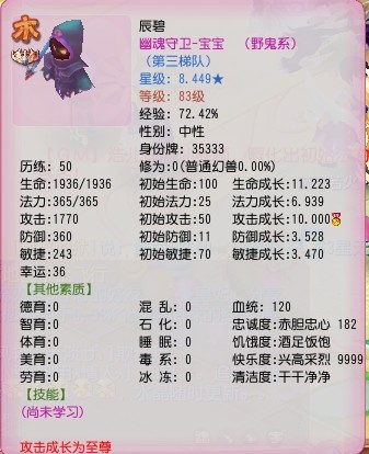 养过的朋友应该都知道野鬼系的幽魂是高攻高敏,并且拥有两次生命!
