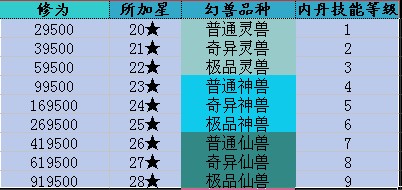 注:无论幻兽星级多少,幻兽修为达到多少,合修为都是按副幻兽修为的80%来算!