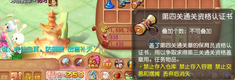 第五关通关的资格与第3关类似,这次非海马蛋,则是换了“拔刀鸡”,依然是10只,个人感觉这关的掉率比第3关高,正常来回走2到3趟就可以打齐。最后找圣魔晶提炼师(仙隐城 265,108)兑换2个圣兽魔晶回来交差。