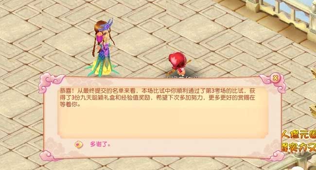4、通过第三考场的比试,即可获得大量经验值奖励和3个九天聪颖礼盒。 |