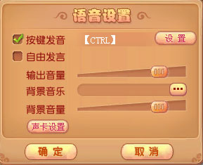 打开语音设置界面可设置发音模式、音量大小、背景音乐和声卡。