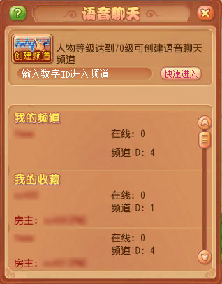 点击界面中的“收藏”按钮可向游戏服务端发送将当前语音频道收藏的请求。每个角色最多只能收藏10个频道。