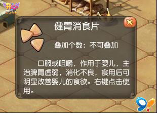 胃好吃饭香,吃得香长得快,千古不变的养儿观念也在花花世界里流行。当开心宝贝每天进食菜肴、经验球的次数达到上限时,便会出现挑食、偏食、拒绝进食的恶习。这个时候,奶爸潮妈们只需使用一些小“手段”也让孩子继续进补。那就《开心》新推出的健胃消食片,是妖王·五行内丹的专属奖励。现在,拉上好友一起搜索随机BOSS,挑战成功得五行内丹,不但有健味消食片,还有仙品装备、追加装备等豪华奖品。