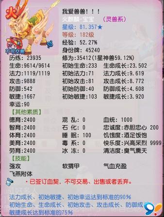 这只麒麟下了多大功夫?问了它的主人才知道,这只麒麟基本都是靠虎王争霸赛的积分换来的。这只麒麟的主人养了一只90多星的虎王,换取了几分之后一时间没什么需求。最近开心开放了关于骑宠能上战场的新功能,于是便有心思搞一只牛一点的骑宠。骑宠里最抢眼的肯定是火麒麟了,但是价格不便宜。