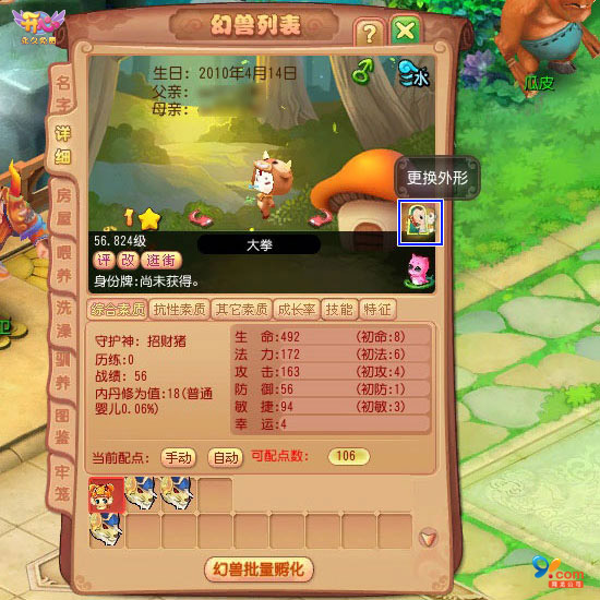 《开心》育儿能够玩出什么花样?你是否想在PK战场不败,想拥有多个和“天神”、“金角”媲美的得力战将?在花花世界生儿育女都能满足你。抽签决定孩子的萌宠守护神,继承其幻兽宠技。有些优秀宝贝甚至可以代替官职宠,带来提升战斗力、增加伤害等效果加成。而且,都育方式也相当轻松,主要是烧菜喂“饭”、送孩子旅游历练等方法,就能培育出全至尊的孩子,在PK战场比金牌战宠还要拉风。