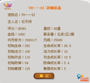 目前,第三届养宠争霸赛的兔斯基最高星是98星,排名榜上是否会出现首只百星至尊,让我们拭目以待!现在,马上就来看看暂排排行榜第一名的全至尊百星萌宠,看看它那叫人垂涎的至尊属性吧!