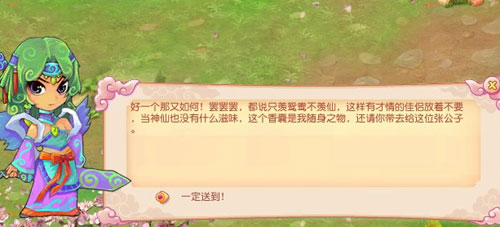小樱很欣赏张书生的文采,并回赠一个香囊给他,看来有一技之长的男人果然比较吃香,真是又长见识了。将香囊交给张书生,让他非常激动,计划着要向小樱求婚。