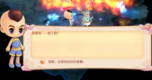 又看到中年的张书生了,他始终都平静的接受命运,真是很了不起。他向你道谢,并说出了第二个心愿,那就是救他的儿子——张小凡离开这里,并且把当年小樱送给他的香囊也拿出来,请你交给张小凡,劝他离开。真是用心良苦的父亲啊。