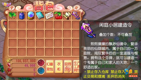 把“家”建在游乐场?如此天马行空的创意,全要归功《开心》房屋建设。全新升级的休闲系统打造最便捷的开心社区,满足你的宅生活。只需1000尺品质1的杉木、1000个品质1的黄铜矿石,就能换回一张地契,建造你的开心小屋。同时,经过你的巧手设计,自由装修开心小屋,自由摆放桌椅灯柜、壁炉床铺等家具,修建增加主将幻兽修为的主将精修阅、增加人物、元婴经验的经验小金库等高档设置,真正感受家的温馨。