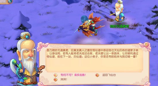 1, 前往悟仙道,击败拦路的微妙元通真君,打开通往历仙道的山路。