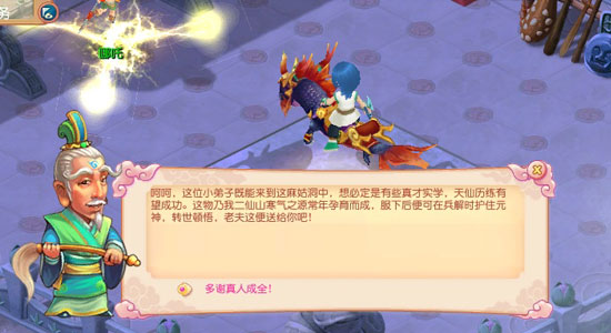 5, 进入麻姑洞,与黄龙真人对话,获得雪魄冰晶。