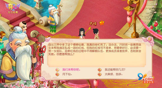都说有情人能成眷属,全靠月老的红线。一根肉眼看不见的“情丝”,联接着两个暗含情愫的男女,是他们相遇相知相恋的感情线。那么,你想知道月老这一次是在为谁牵线吗?即日起至8月31日前,“月老”每天都在“招募”单身男女扮红娘,促成红鸾心动的恋人们。现在,去找月老领任务吧,也许在助人为乐的过程中,你还能从中结交来自天南地北的朋友,扩大你的人脉,从此告别寂寞。