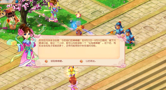 1.中秋期间,满50级的修真人,每过一个小时,都可找嫦娥姐姐(仙隐城367 ,74)领取一个“仙兔棒棒糖”。