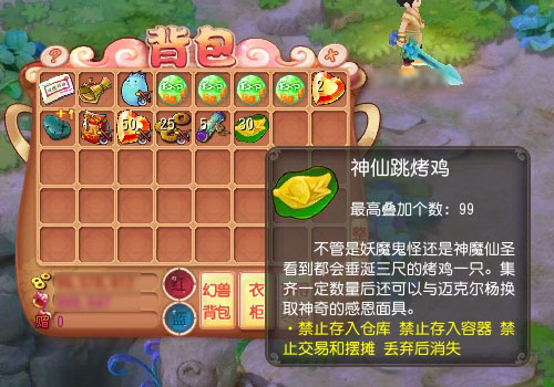 2、在缥缈仙境中的各个片区与幻兽战斗,胜利后都有几率得到神仙跳烤鸡。