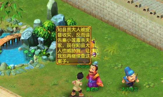 6、查出真相后,胡师爷让你去青楼附近找黄老爷(烟波镇 111,121)寻求帮助。