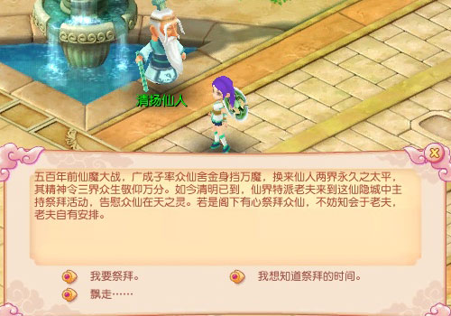 1, 活动时间内,可在清扬仙人处领取祭拜物品。