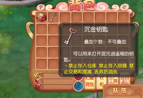 说明:昆仑子赠送的神秘箱子,需要用沉金钥匙才能打开。点击右键查看。