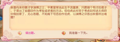 2、再看看文征明、春香的信物:原来是要使用信物替代伯虎答题,须知仙隐城藏龙卧虎,不乏才高八斗之士。高人们,亮出你的胸肌,不,亮出你们一肚子的墨水,打败这些该死的题目吧!