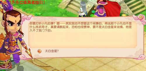 太白金星听到千妖洞的名字,竟然比你还着急,看来事情果然凶险。他指点你去找他以前曾经收服过的浮屠怪,这个妖怪就是从千妖洞中来,找他应该可以去到千妖洞救小凡,而这个浮屠怪,则在千鸠沼泽活动,抓紧时间!