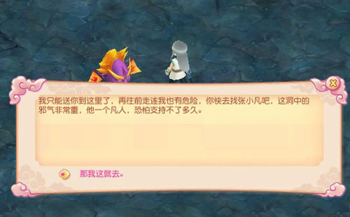 进了千妖洞,浮屠怪就不肯再往前走了,你只好独自前进,听说这洞中的邪气非常厉害,如果不抓紧时间,恐怕小凡会有危险,加油!加油!