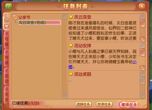 1、活动时间内找到圣衣娘娘,得知小凡不见了。