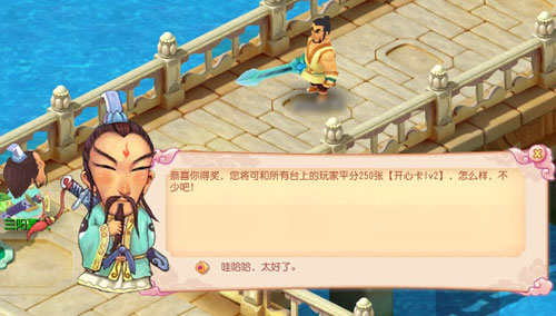 如果你站在中间的走廊,那么只能很抱歉的告诉你,你得与答错的一方一起被送回仙隐城。还是相信自己的选择吧,只要你能坚守到答题活动结束,就能与获胜的修真者们平分活动送出的大奖――欢庆卡片了!