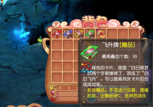 当然合成是有一定风险的,只要合成失败,你当前用来合成下一张卡片所用到的卡片都会全部消失。那怎么办呢?别急,我们还有最后一个法宝:飞升牌!只要你在合成过程中,加入飞升牌,那么合成的几率就会大大提升!