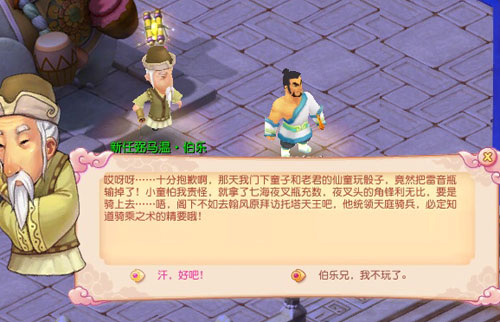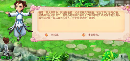 某日天气爽朗之时,仙隐城中出现了一玲珑可爱的仙童。上去交谈了一番,得知新任的弼马温伯乐正在苦苦研究驯服幻兽的奥妙,仙童就是为伯乐招贤纳士而来。
