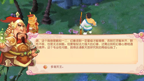 托塔天王一语道破天机,原来要驾驭法力强大的幻兽,还需达到和幻兽心意相通的境界,天王说这个问题太具备学术性,需要去找天宫研究院的南极仙翁探讨。生活所迫啊,再次奔波!