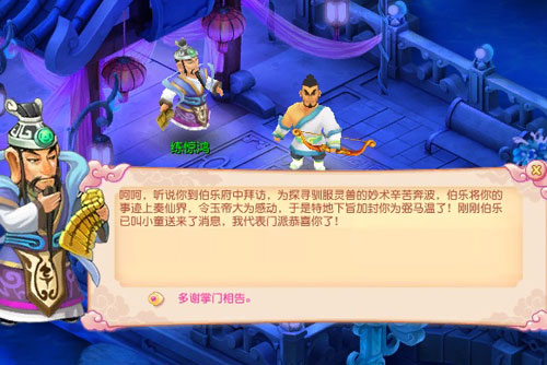 6、喂完排骨后终于得到谜底,返回告知伯乐,令他的心结得以解开,他同时承诺会向天宫举荐你为新任弼马温,并会将最后任职消息告诉你门派的掌门人。