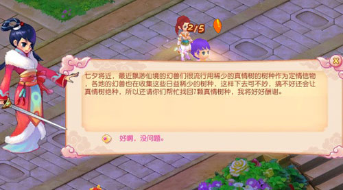 4、活动期间可从缥缈仙境各地的幻兽身上取得真情树种,带给紫月仙子7颗真情树种就可以换得一个爱情之果。