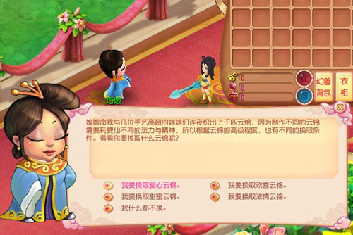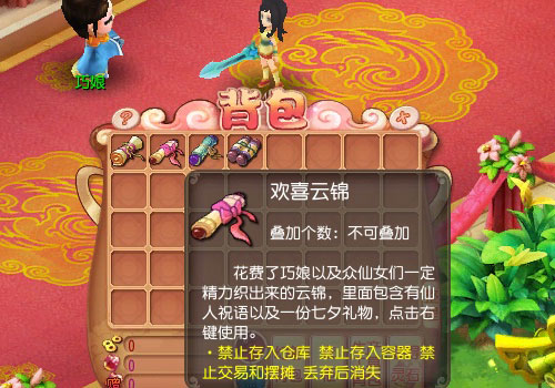 2、将七夕道具拿去跟巧娘兑换祝福云锦,使用云锦获得奖励以及仙人祝福。