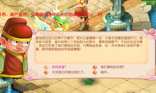2、到史蒂芬张(仙隐城364,72)处获得万圣变身面具,变身为各个居民惧怕的幻兽前去恶作剧。