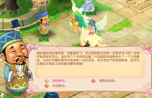 2、拿上入场卷找到万圣舞会司仪祝万圣(仙隐城299,44),报名参加舞会。